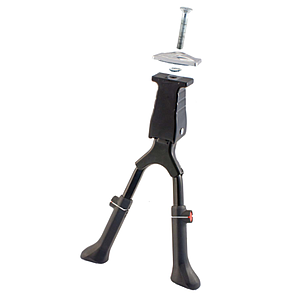 * • Adjustable for 24”/26”/28” bicycles • Aluminium body with nylon-covered steel legs • Includes screw and plate • Adjustment button Technical specifications: * Wheel diameter: 24", 26", 28" (700) * Kickstand type: Bipod * Kickstand position: Central * Kickstand mounting type: Central direct mout at frame